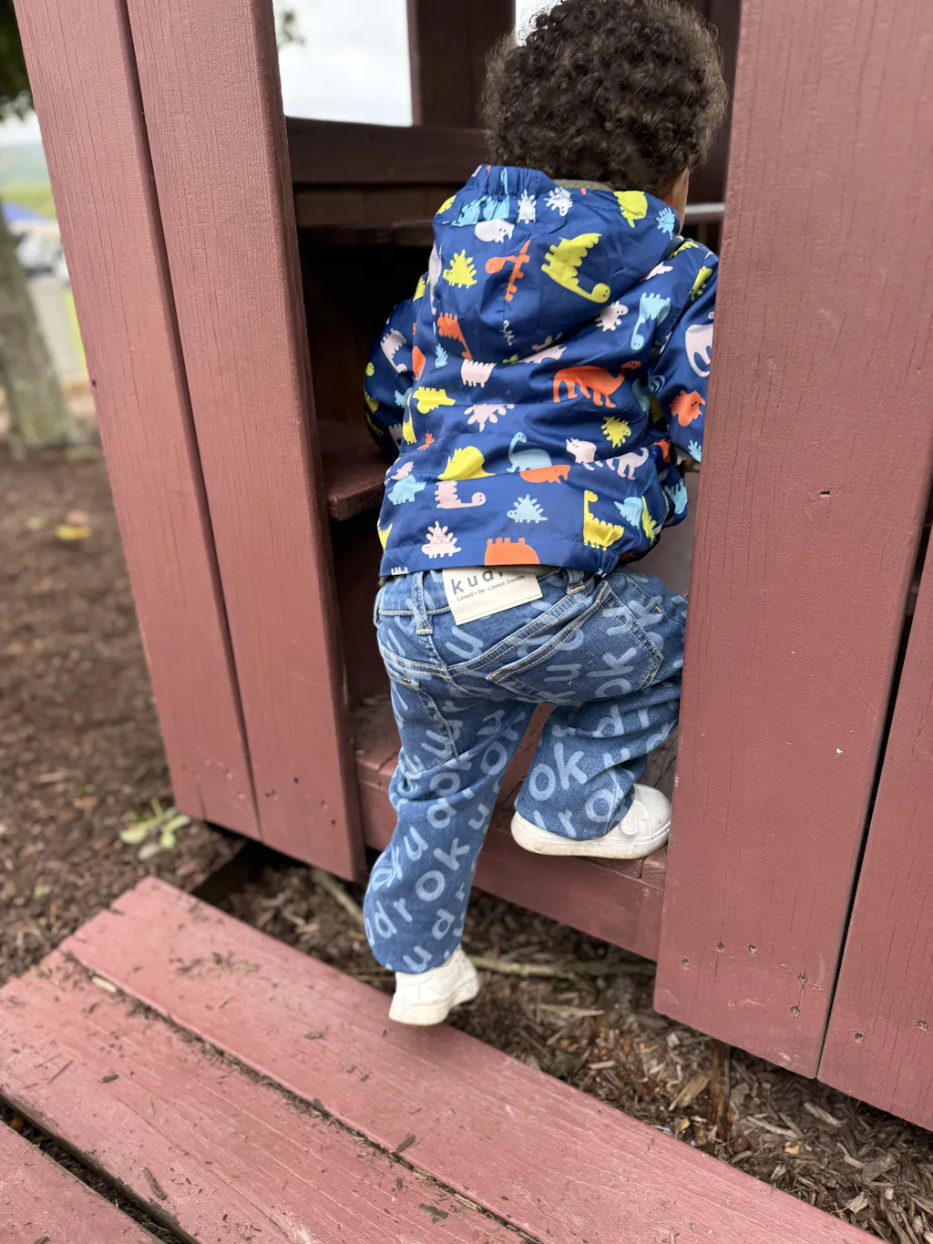 Luxe Premium Denim with Loopback interior for kid friendly all year comfort. Our softest, stretchiest, airest fabric that your kids will love. Looks like denim but the comfort of a sweatpant your kids new bestie.